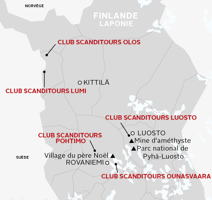 Plongez au cœur de la magie lapone avec nos Clubs Scanditours, pensés pour allier confort, convivialité et découvertes. Profitez d’un hébergement chaleureux, de vols spéciaux directs, d’une équipe d’animation francophone à vos côtés et d’un programme d’activités typiques inclus : safaris en motoneige, balades en traîneau à chiens, soirées autour du feu…