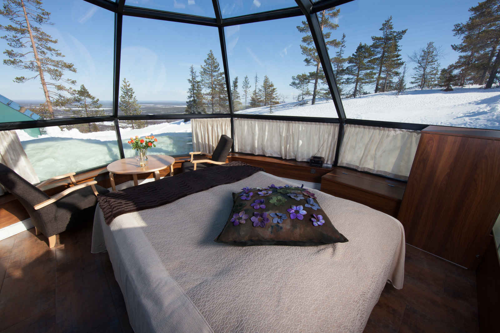 Une nuit en igloo de verre ? Pour vivre une expérience unique au cœur d’une nature lapone en perpétuelle changement. Endormez-vous sous un ciel illuminé d’étoiles et si les conditions sont réunies, profitez de la magie des aurores boréales, tout en bénéficiant du confort et de la chaleur d’une chambre d’hôtel. Comme une impression d’infini…
