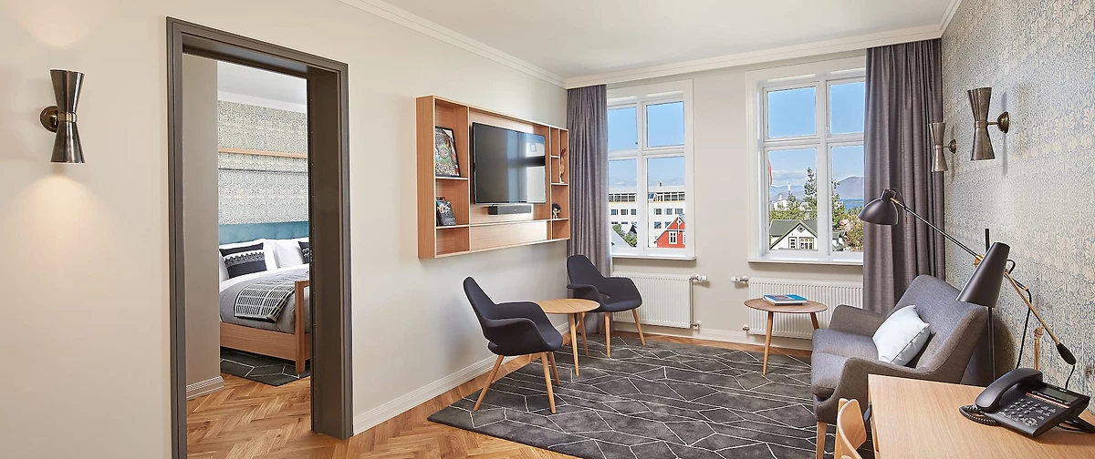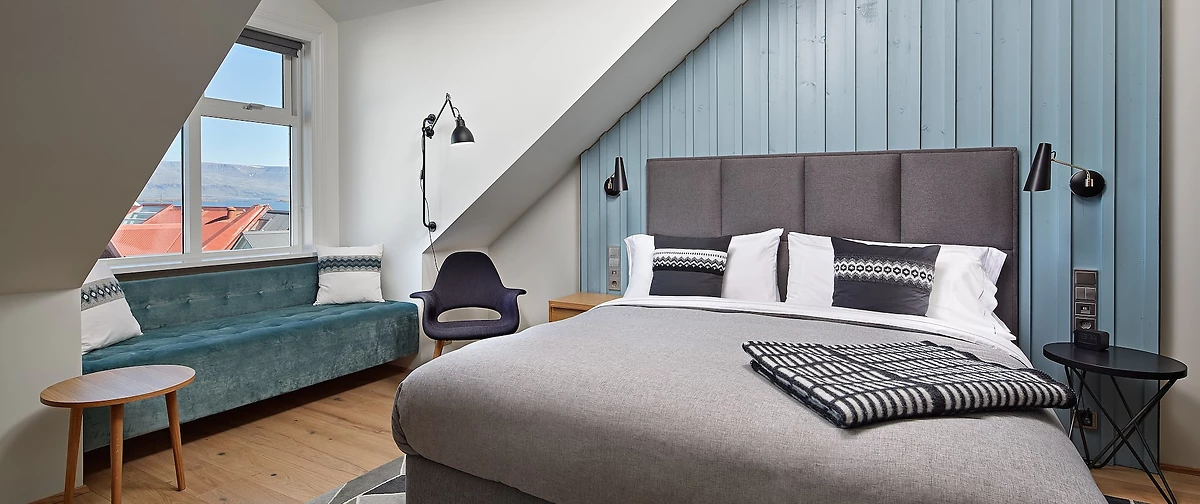 Composé de six bâtiments communiquant les uns avec les autres, l’hôtel Canopy proposent des chambres à la décoration islandaise minimaliste disposant toutes d’un coin salon, d’une salle de bain avec douche à l’italienne, d’un bureau et d’un nécessaire à thé/café.