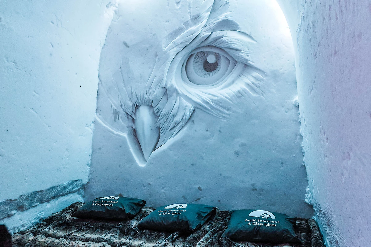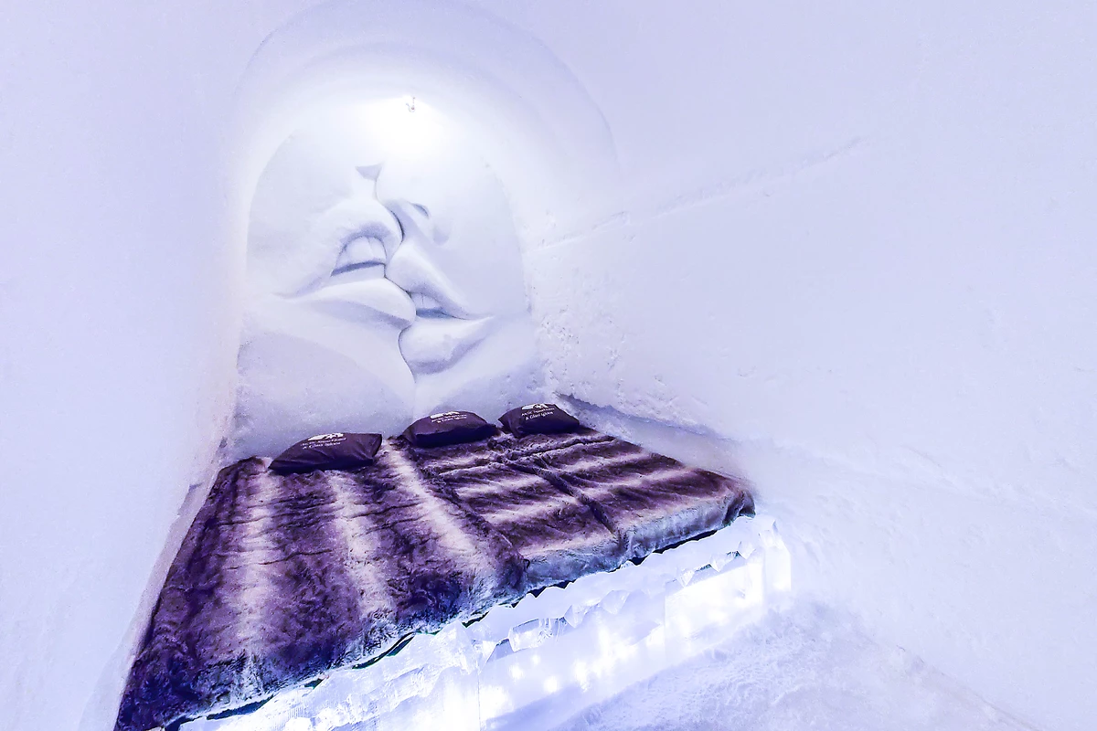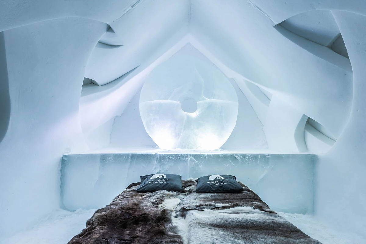 Les 18 chambres et 10 suites décorées par des designers sont toutes équipées de véritables lits et de sacs de couchage très chauds. Adjacents à l’hôtel de neige, on trouve également 34 igloos de verre et 5 igloos de verre famille.