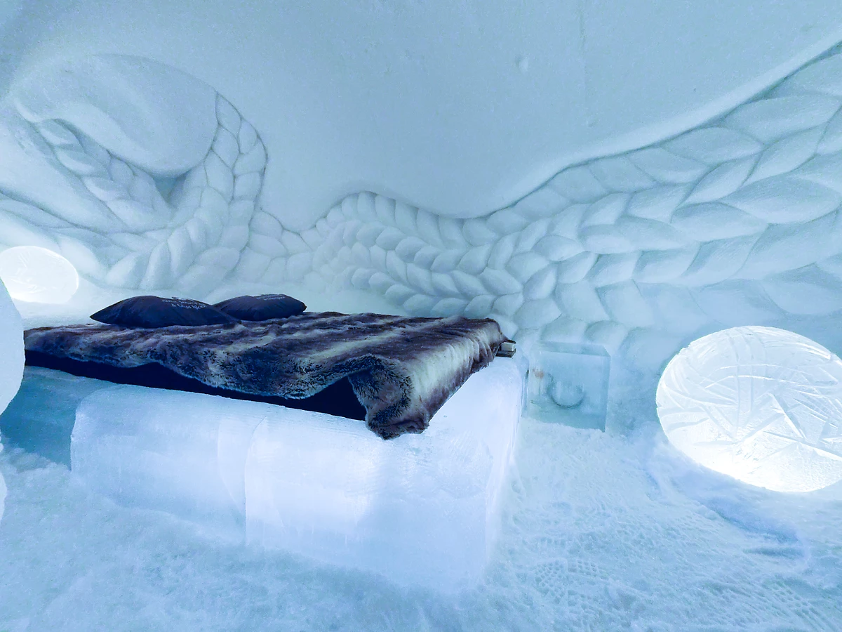 dans l’hôtel de neige, d’une surface d’environ 28 m², au design et à l’atmosphère unique.