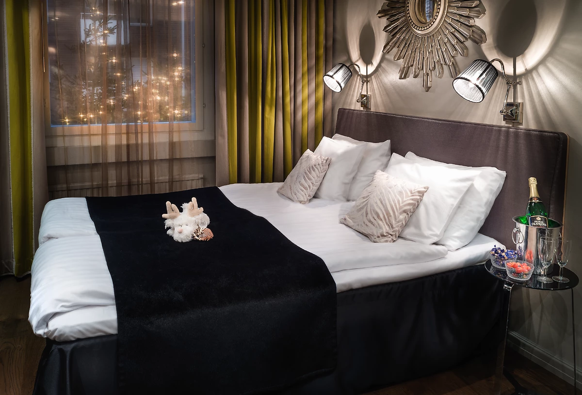 Transfert vers le Village du Père Noël et temps libre. Arrêt à l’aéroport, transfert et installation à l’Arctic City Hotel.
