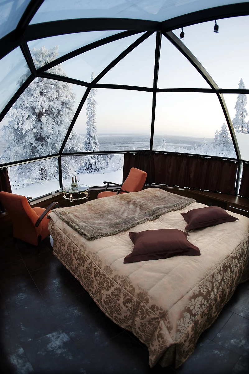 27 igloos de verre équipés de kitchenette, nécessaire à café, douche, sanitaire, sèche-cheveux, radio et lecteur CD et accès Internet. Peignoirs et chaussons à disposition.