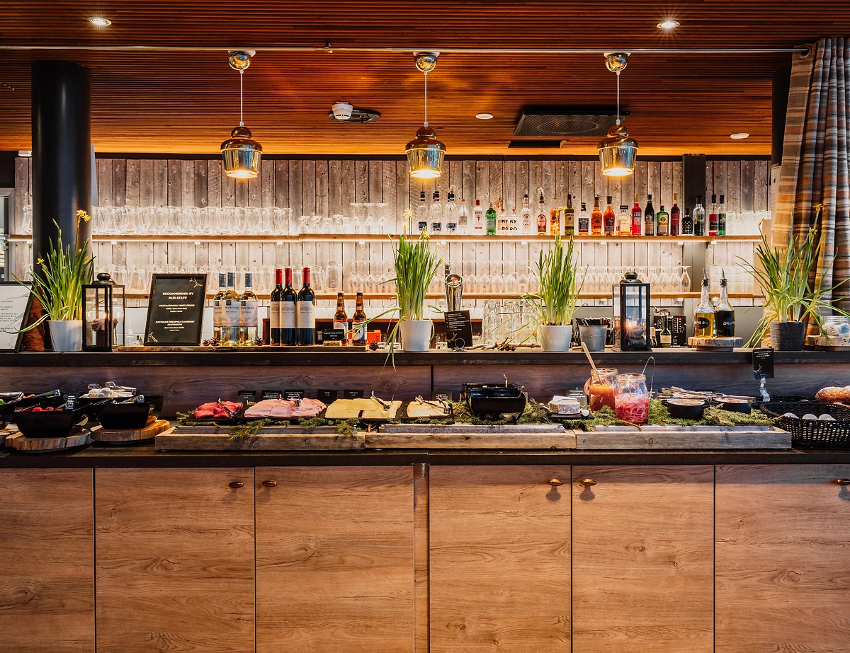 Le restaurant Tunturi offre une vue splendide sur la forêt enneigée et sert la demi-pension (petit déjeuner et dîner-buffet).