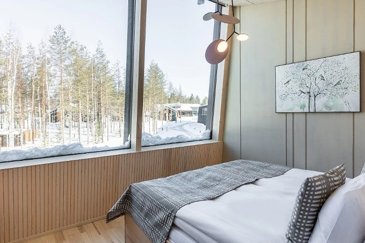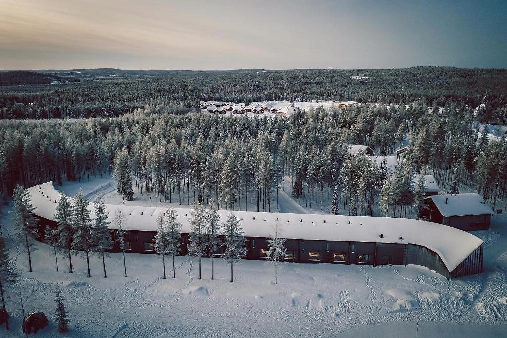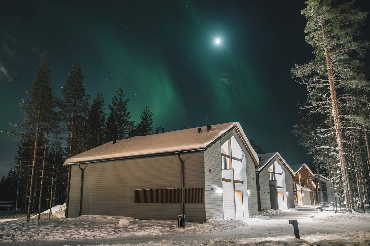 Ces chalets mitoyens au design scandinave ainsi qu’une partie hôtelière proposant des chambres dotées de fenêtres panoramiques allient confort et ouverture sur la nature pour profiter pleinement des aurores boréales.