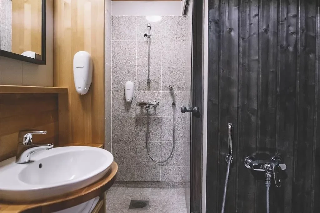 à la décoration soignée, disposant d’une vraie salle de bains. L’espace nuit, qui peut accueillir jusqu’à 3 personnes, est doté de parois de verre permettant l’observation des aurores boréales.