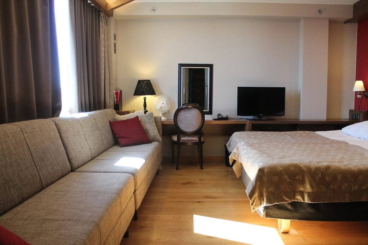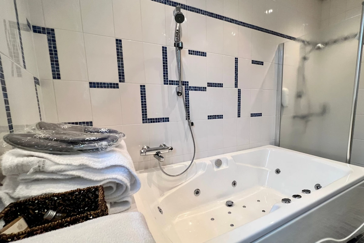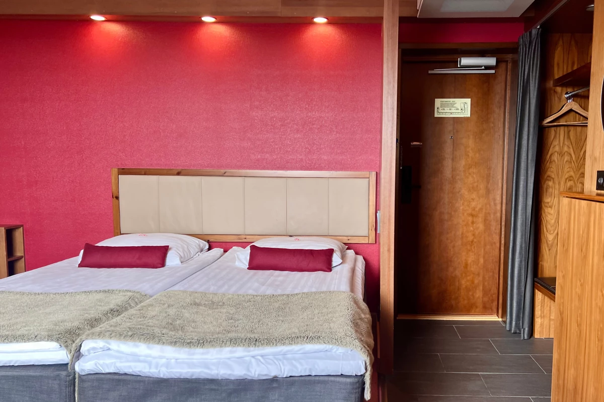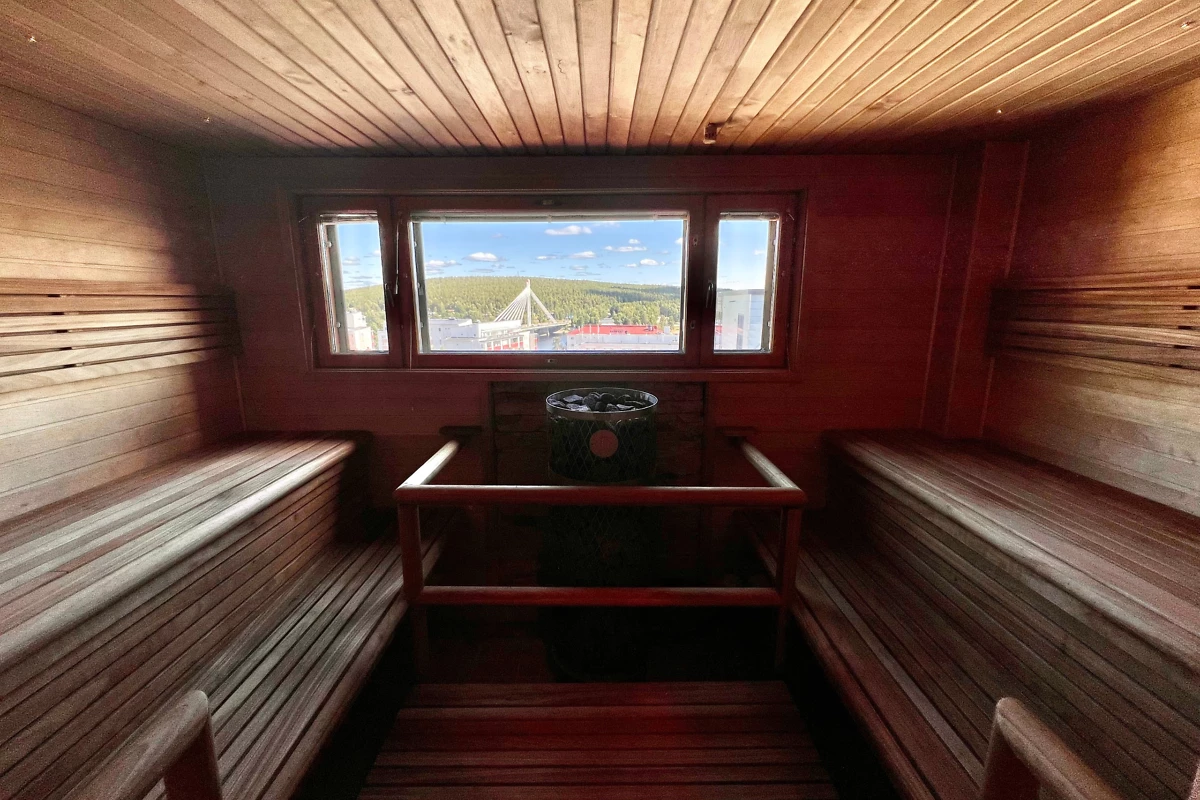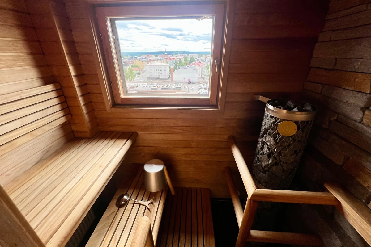 Située dans les étages élevés, cette chambre de 28 m² peut accueillir jusqu’à 4 personnes et offre une vue dégagée sur la ville. Bien que non rénovée en 2023-2024, elle bénéficie d’un atout majeur : son sauna privatif !