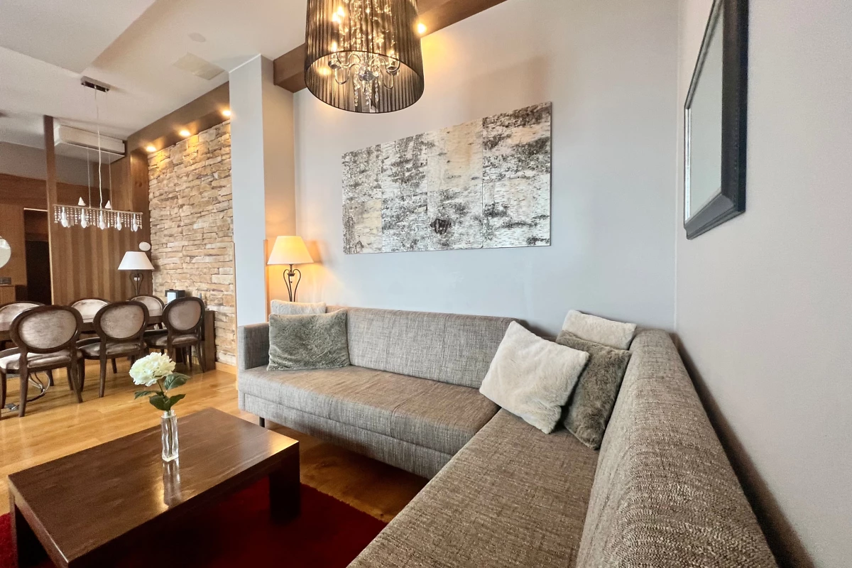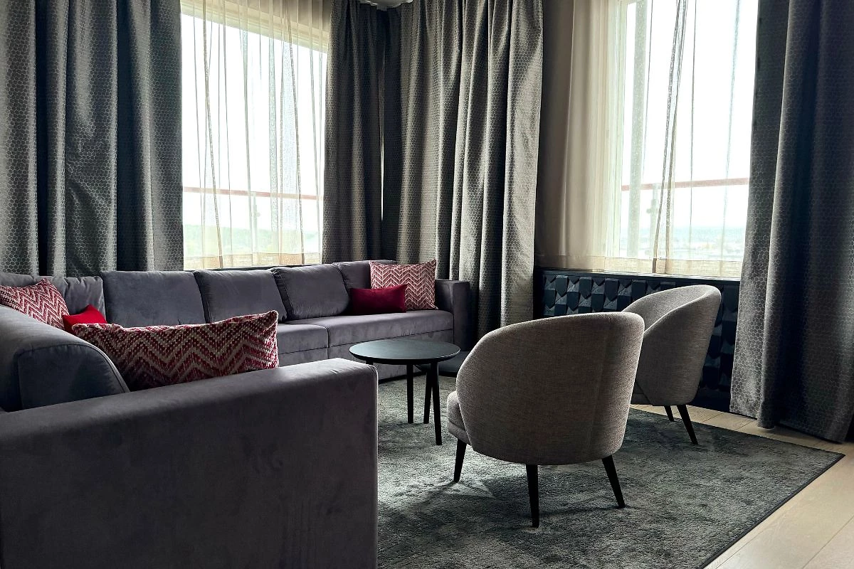 Cette belle suite est située dans les étages élevés. Elle dispose dispose d’un salon séparé et d’un sauna privatif. Elle peut accueillir jusqu’à 6 personnes.