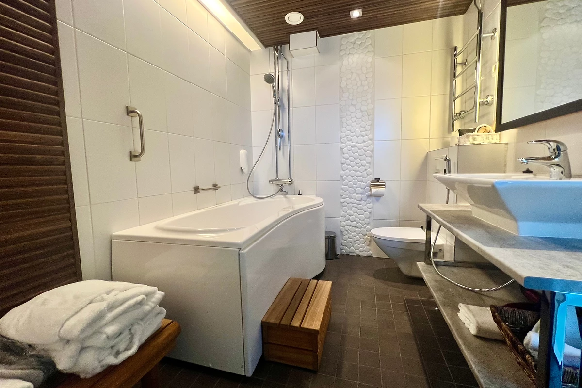 Cette suite spacieuse d’une superficie de 42 m² a été récemment rénovée en 2023-2024. Elle dispose d’un sauna privatif et peut accueillir jusqu’à 3 personnes.